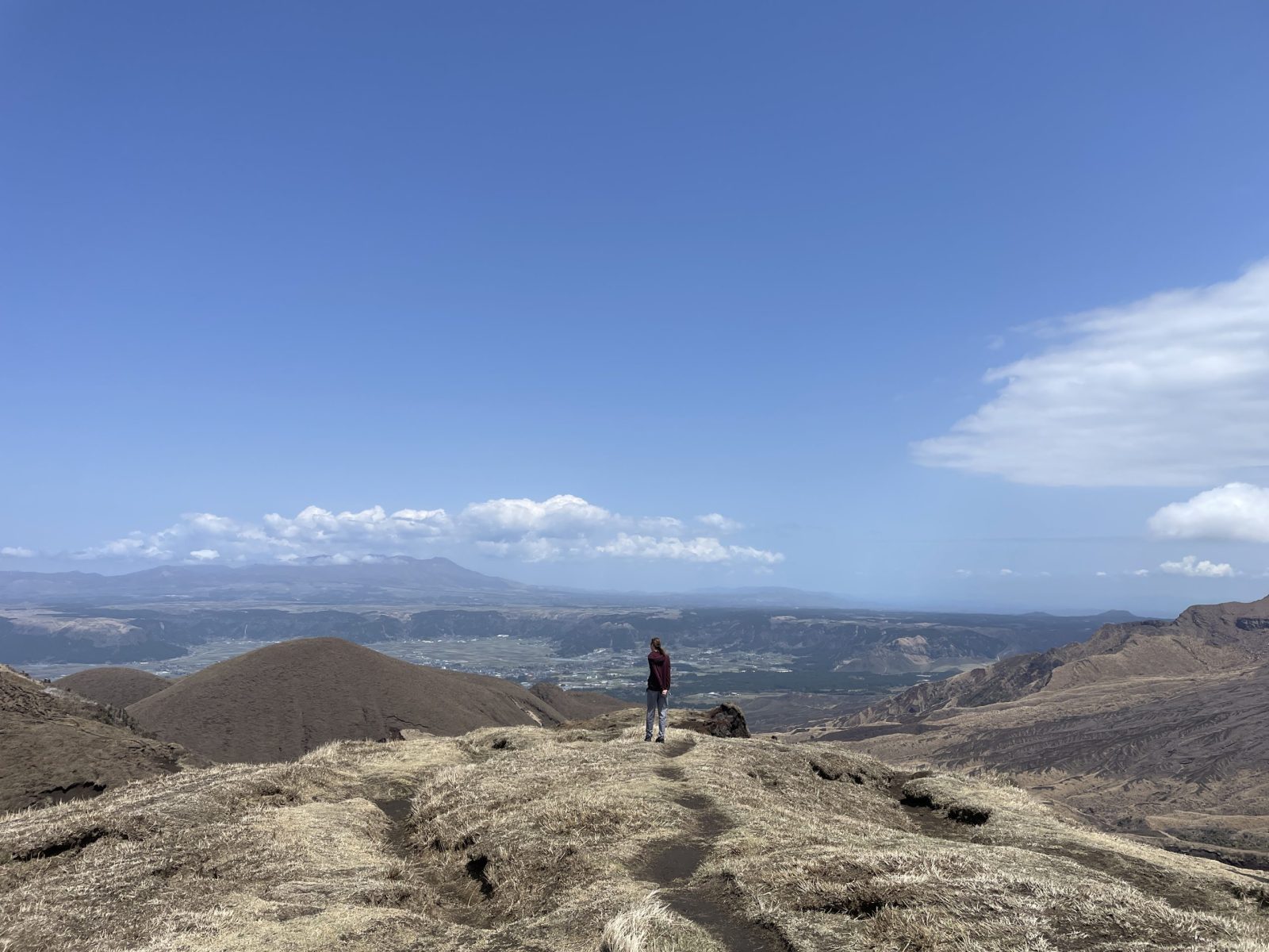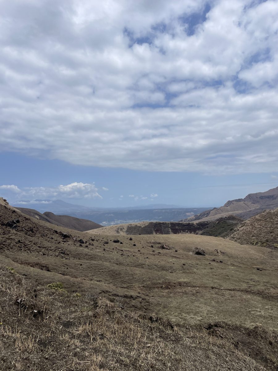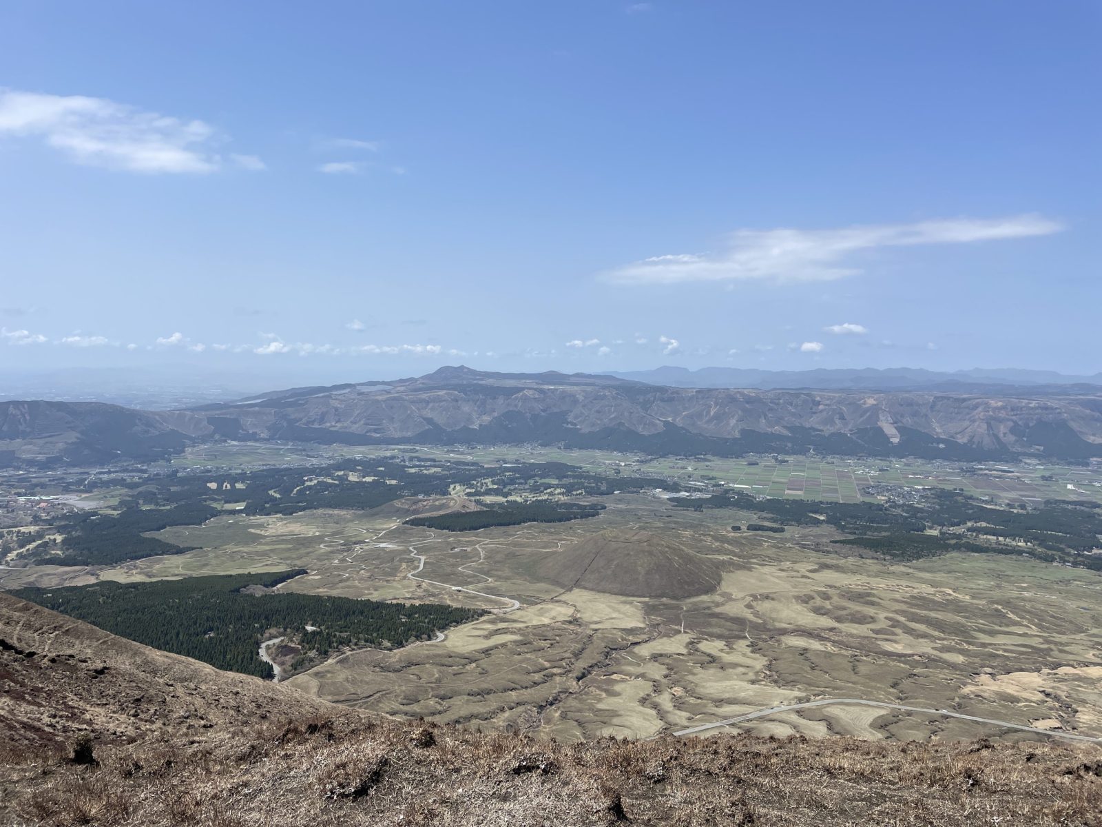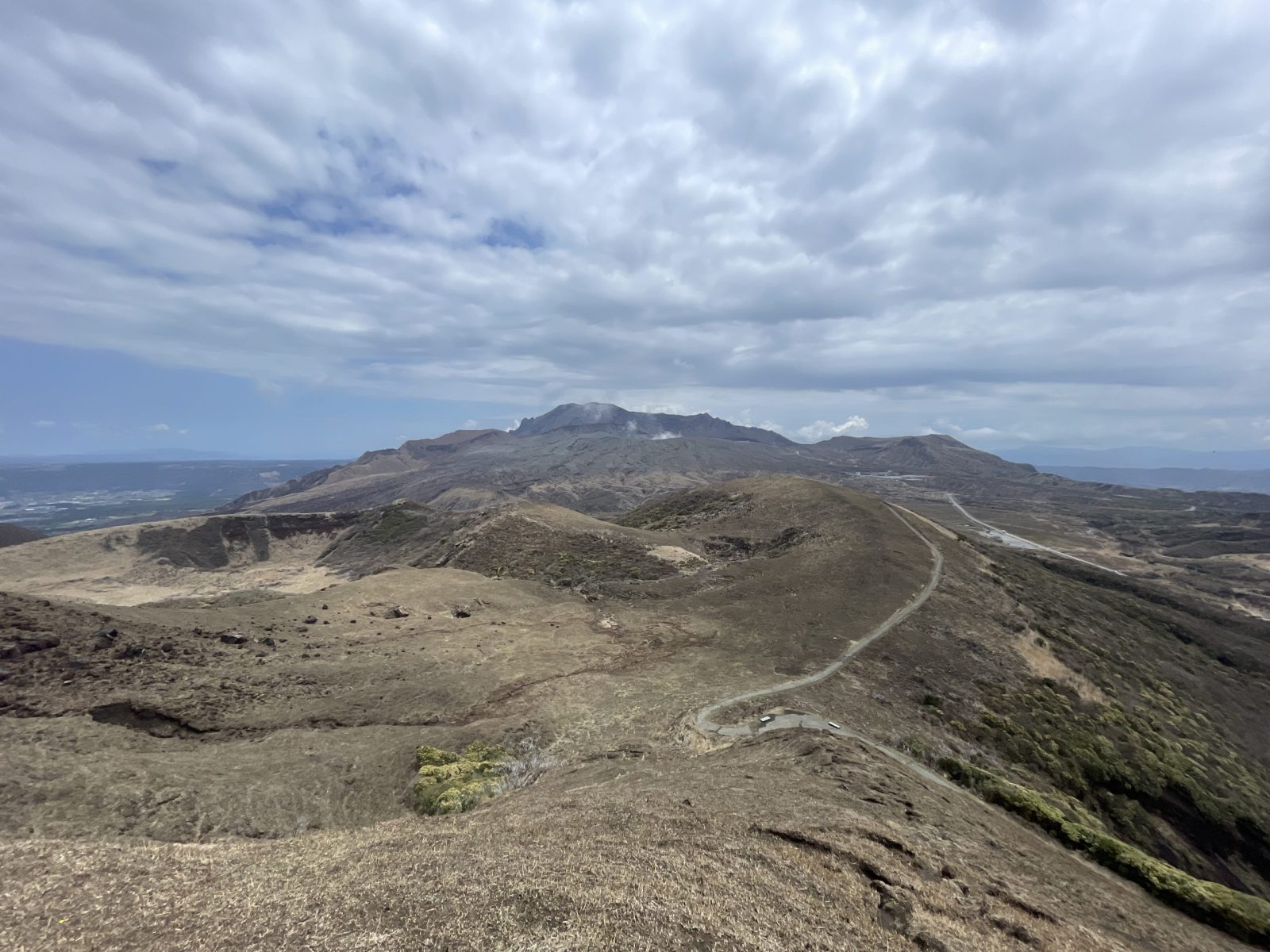 外輪山もくっきり見えます。このお鉢巡り、フラットでめちゃくちゃ走りやすいです!!