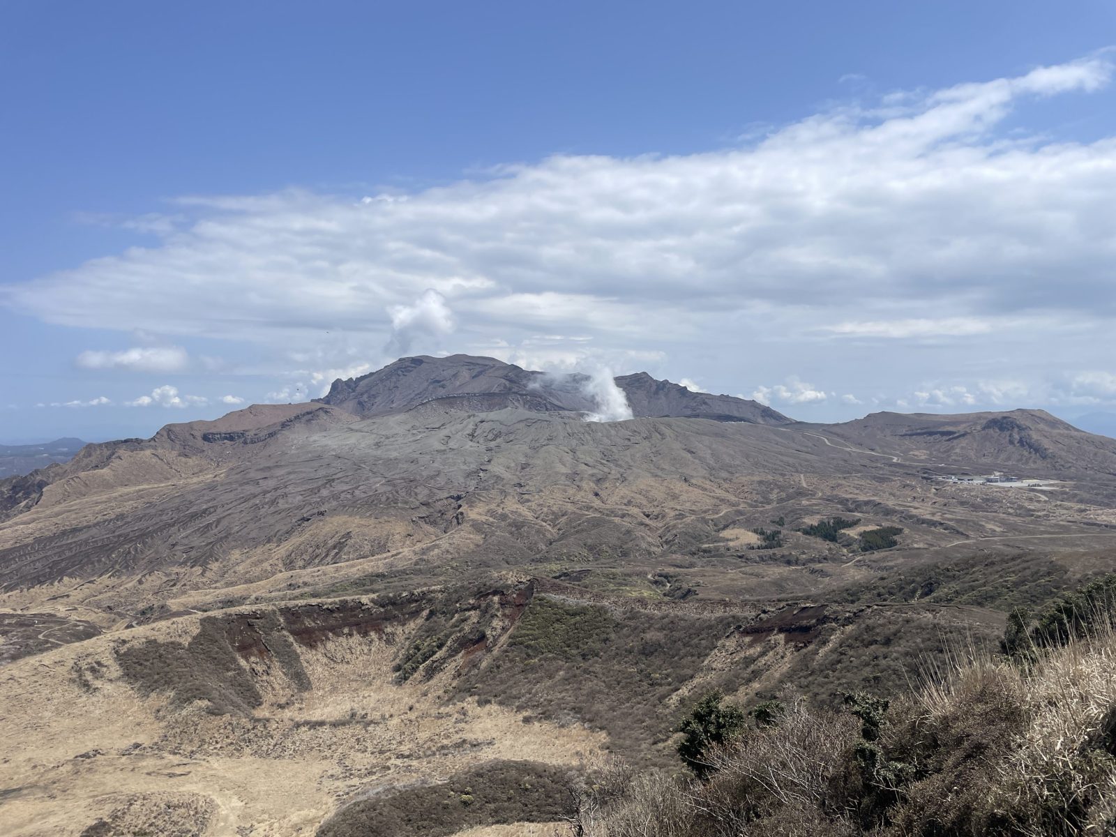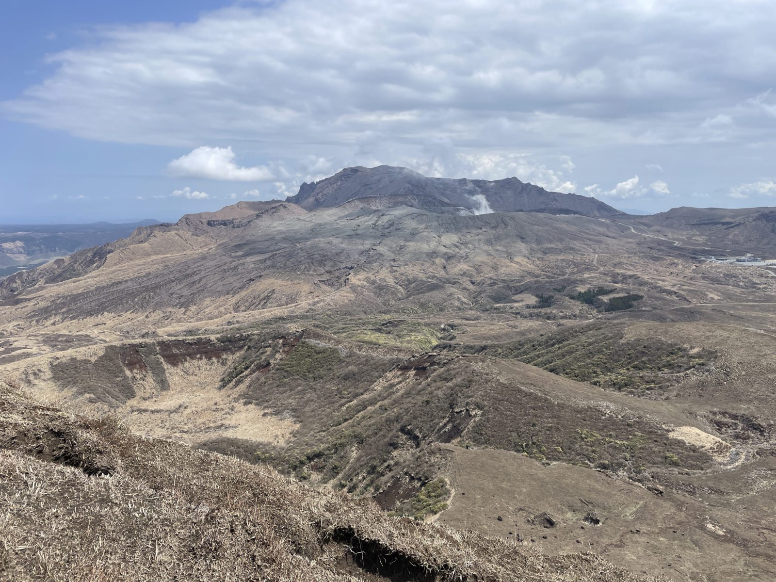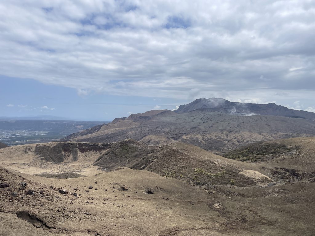 晴れてきたので中岳方面もばっちり見えます。今日も噴煙がもくもくです。