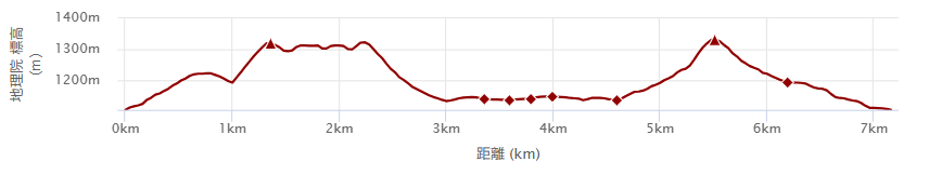 | 標高 | 杵島岳1,326m、烏帽子岳1,337m |