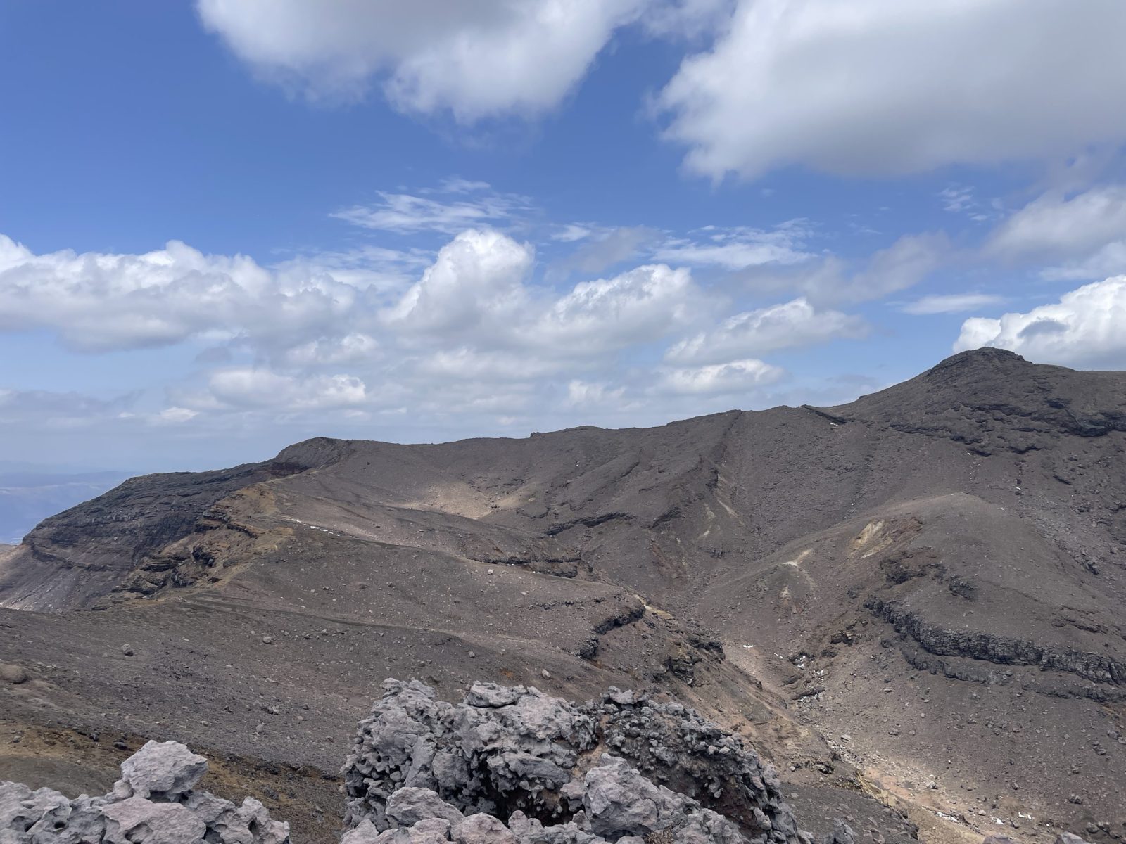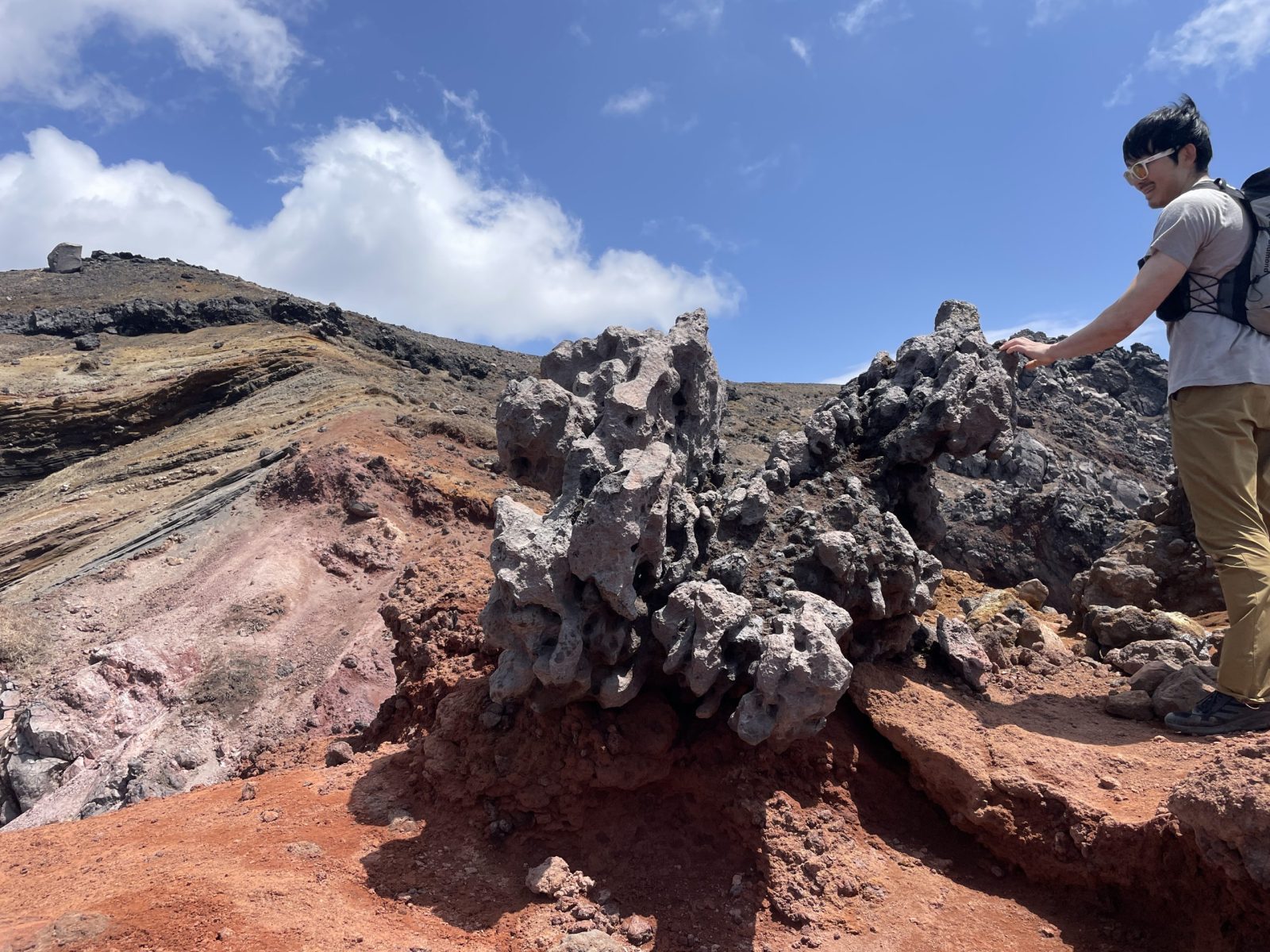 南岳までの道中では溶岩が転がっていたり、断層が見えたりして、いちいち感動。地球、すごい。