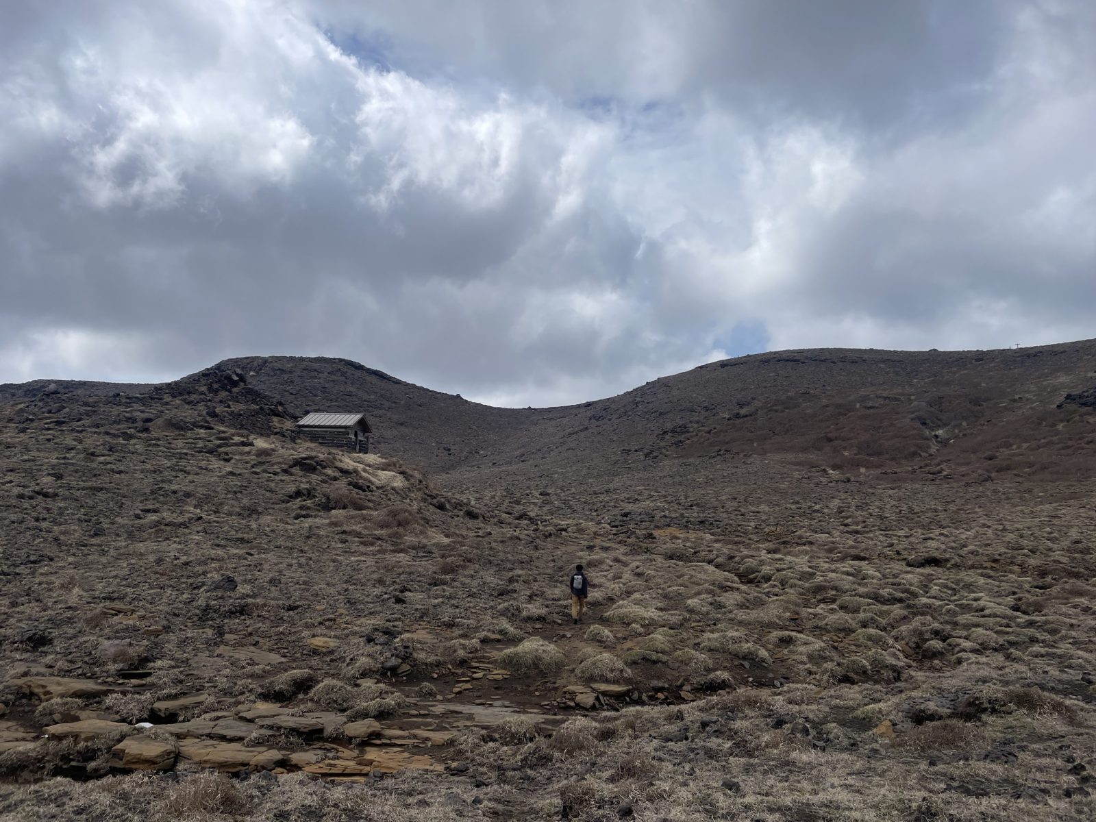 中岳から火口東展望所までの道は結構急で、且つ風が強く抜けます。