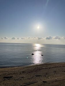 出てきたばかりの太陽はオレンジ色で、とても綺麗で感動。
