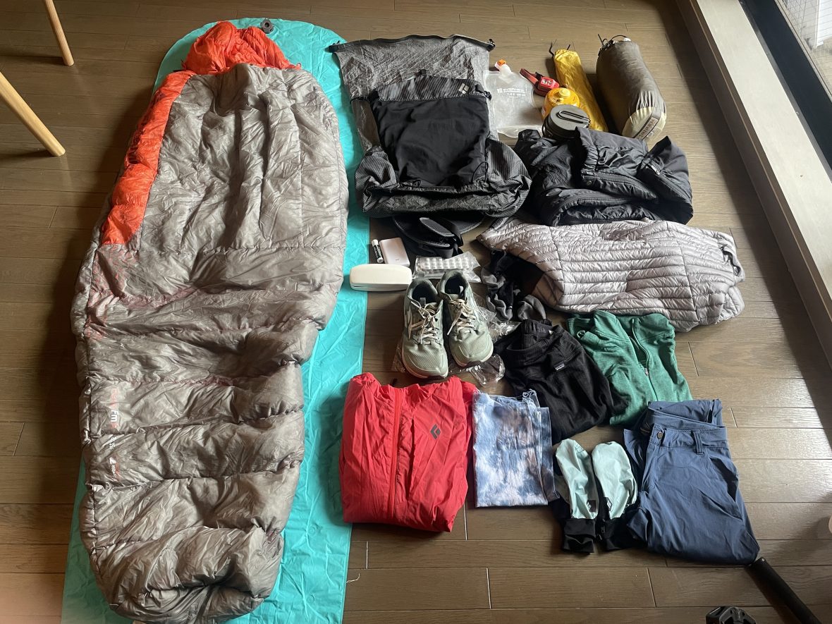 今回の日程では雨が降るとしても小雨程度の予報。そのためレインウェアは持って行かず、撥水加工された行動着で賄うことにしました。