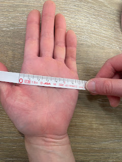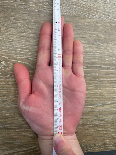 私の手のサイズは全長が約16.5cm、幅が約7cmです。それでSサイズがベストサイズでした。