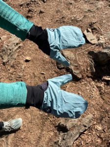 グローブはグリッドフリースなので暖かく、それと同時に汗離れが速く、手に汗をかいた時に手が冷たくなりづらいです。風が強い時や稜線に出た時など、フードをつければすぐに暖かさが戻ります。