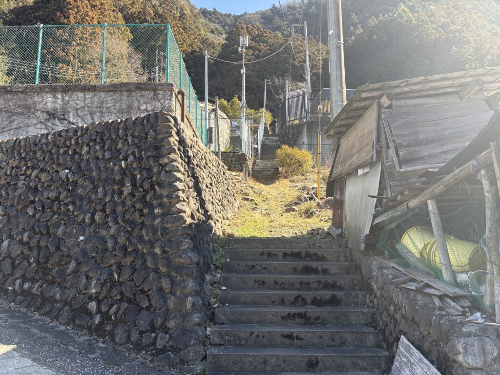 2. Trailhead: Follow the narrow street past the restaurants to the Okutama Welfare Center. Cross the railroad crossing and head toward the mountains. Pass the Hikawa Elementary School and climb the narrow stone steps between residential houses.