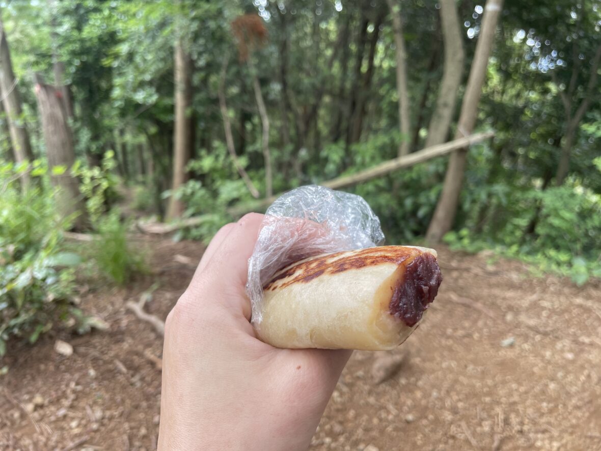 エナジーバーは油が多く消化に負担がかかりますが(胃もたれしますが)あんこロールは油少なめで消化に負担がなく、ハイキングは勿論トレランの時にもおすすめできる行動食です。