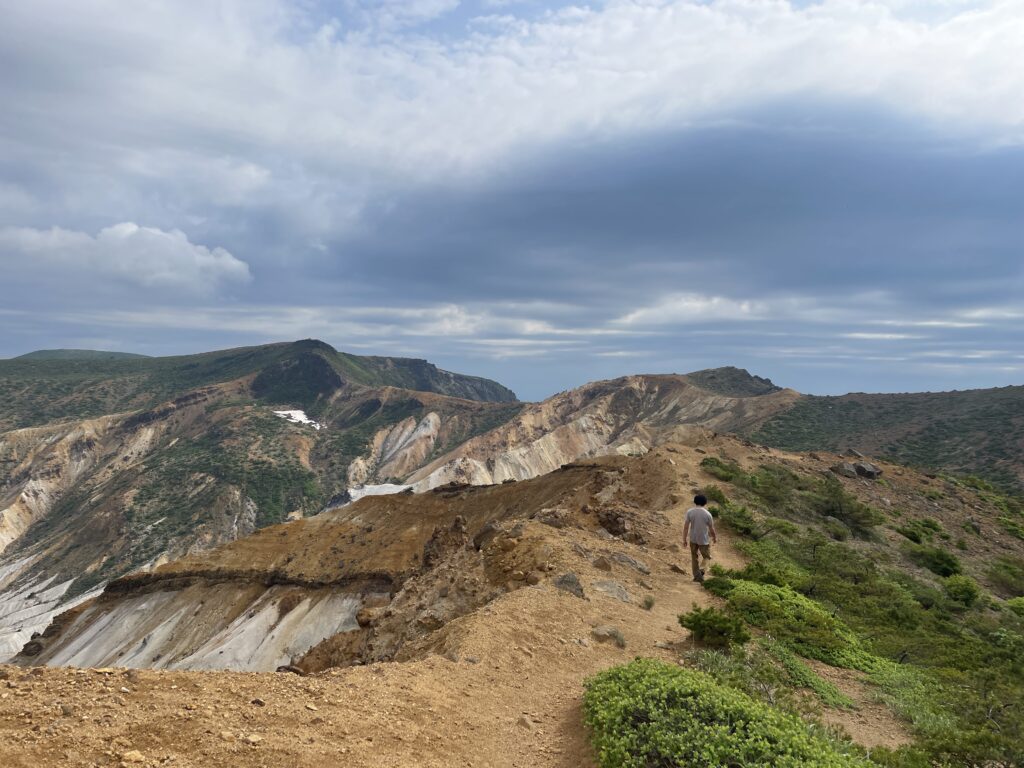 稜線の途中には現在廃止されているくろがね小屋方面への道があり、そこは硫黄の匂いが強くなった気がしました。