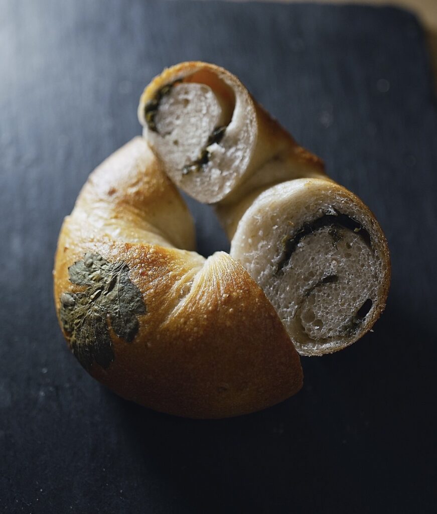 苦みがぐっと減り、和の香りのするベーグルになりました。どこかよもぎ団子を彷彿とさせる香りです。