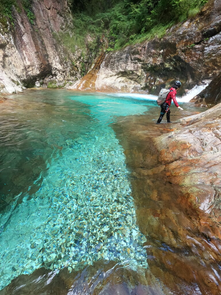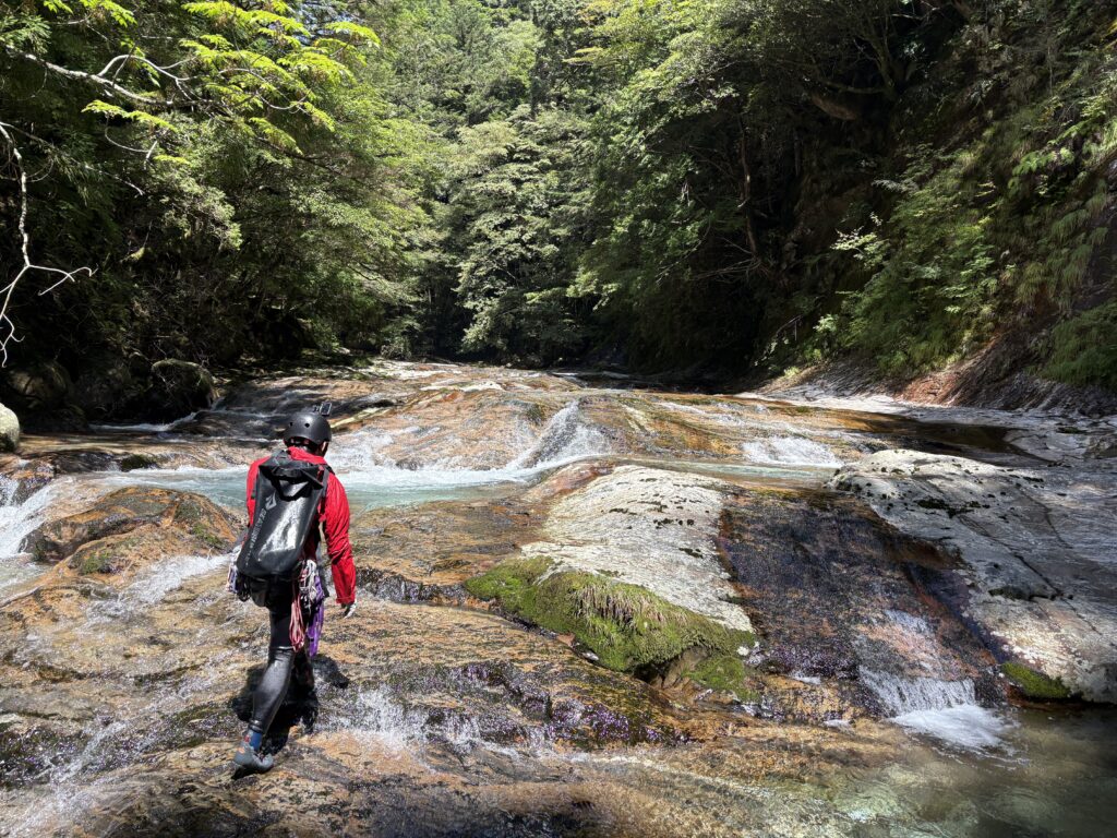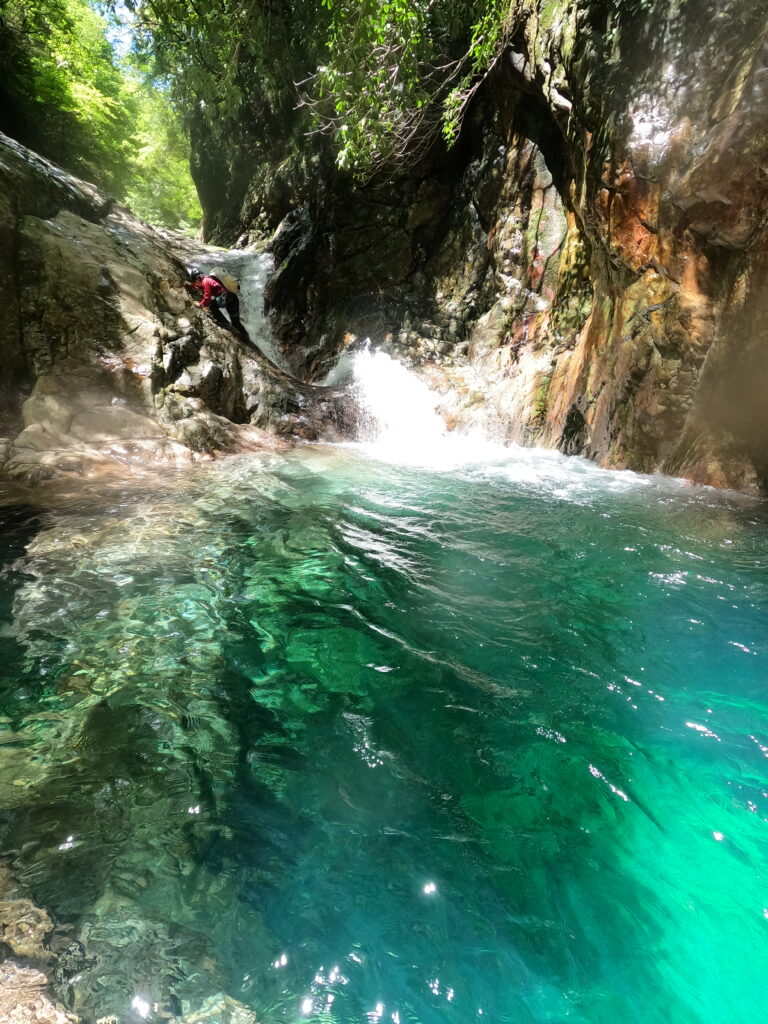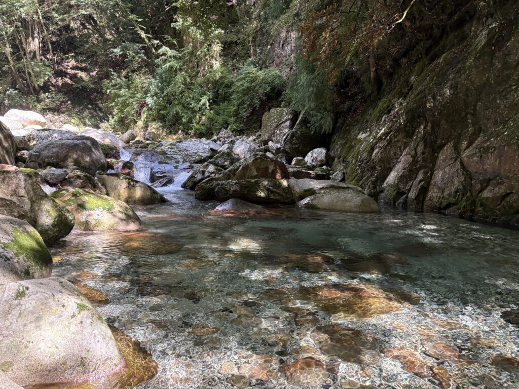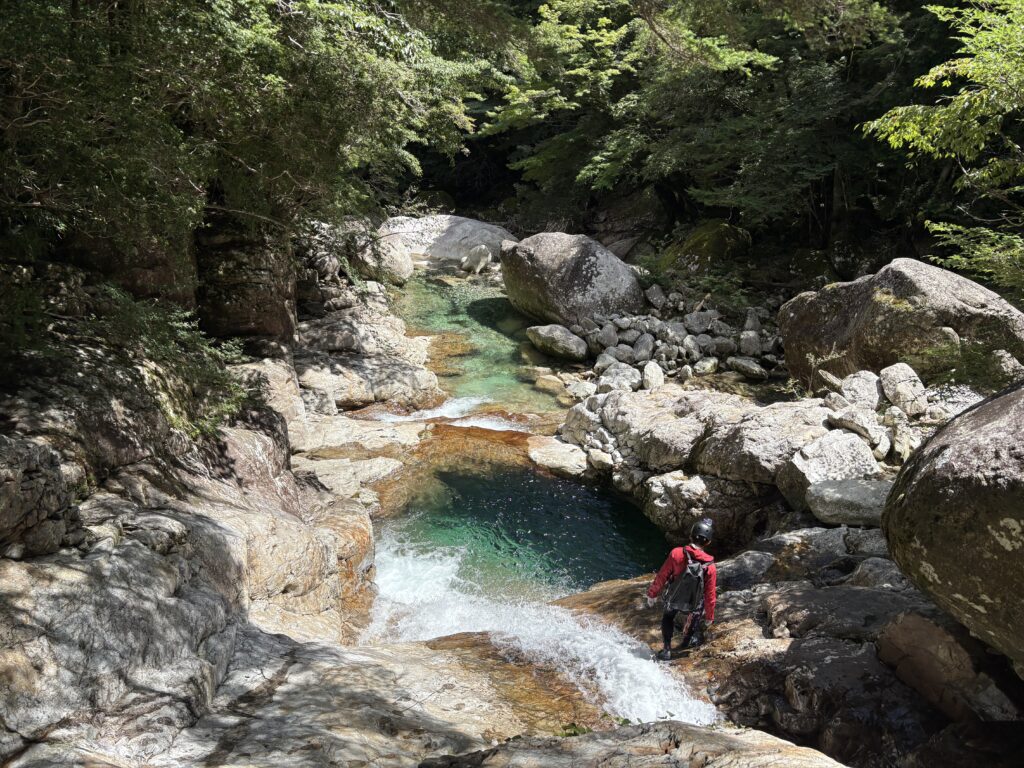 私は登攀内容も重要ですが、水の綺麗さも重要なポイント。今まで行った南木曽(柿其渓谷)、宮崎の祝子川、岐阜の海ノ溝、大峰の白川又川と並んでトップ5に入る美しさでした!