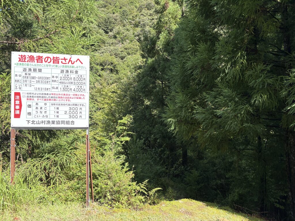 入渓は駐車スペースからすぐ。『火事注意』の暖簾が落ちてしまっているけれど、その暖簾が落ちている道を1分くらい行けば入渓です。(正直どこからでも入渓できます。)