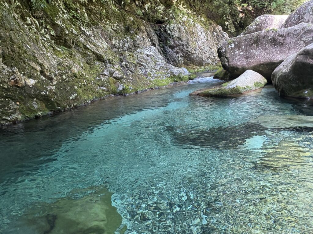 透明度が非常に高く美しいエメラルドブルーで有名な前鬼川。全国にその名を轟かせる『前鬼ブルー』は伊達じゃない!期待以上の美しい姿に大興奮。